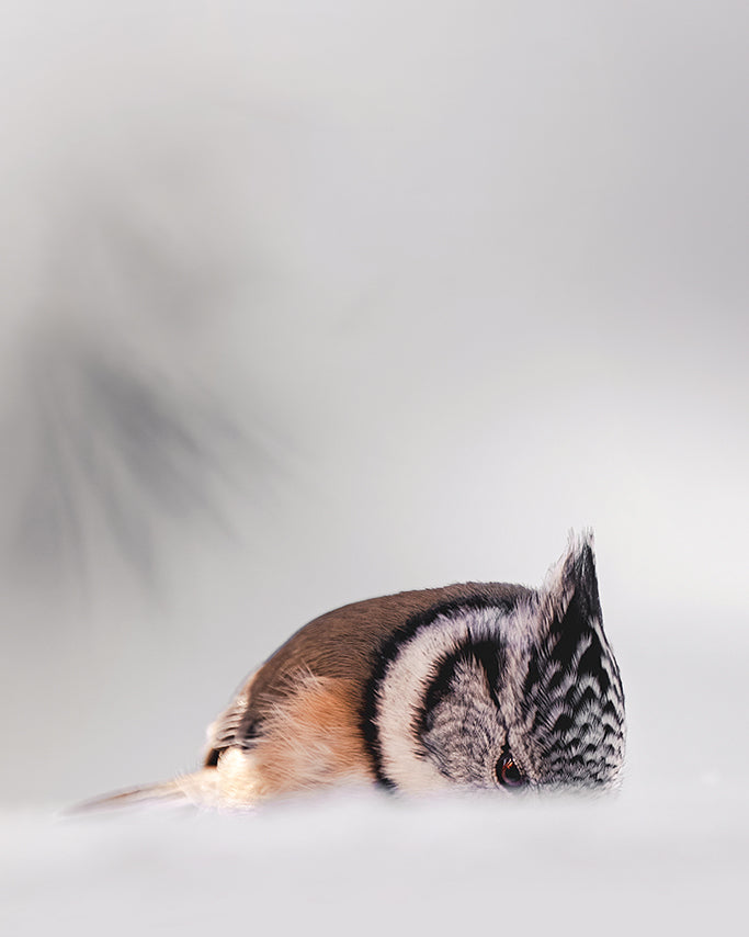 Mésange huppé dans la neige, Bolquère — Pyrénées-Orientales.